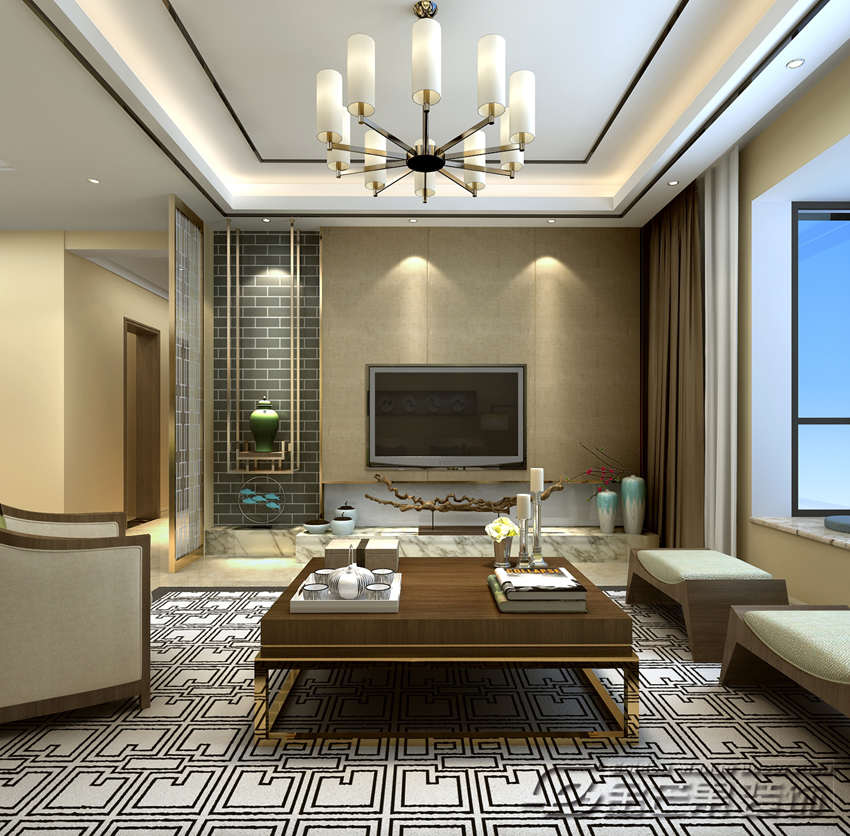 惠景園135㎡ 簡中風(fēng)格 客廳效果圖 金芒果裝飾設(shè)計(jì)師 出品