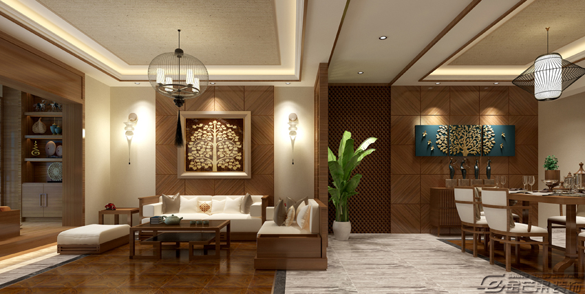 興港瓏灣110㎡ 東南亞風格 客廳效果圖 金芒果裝飾設計師:徐祎珅 出品