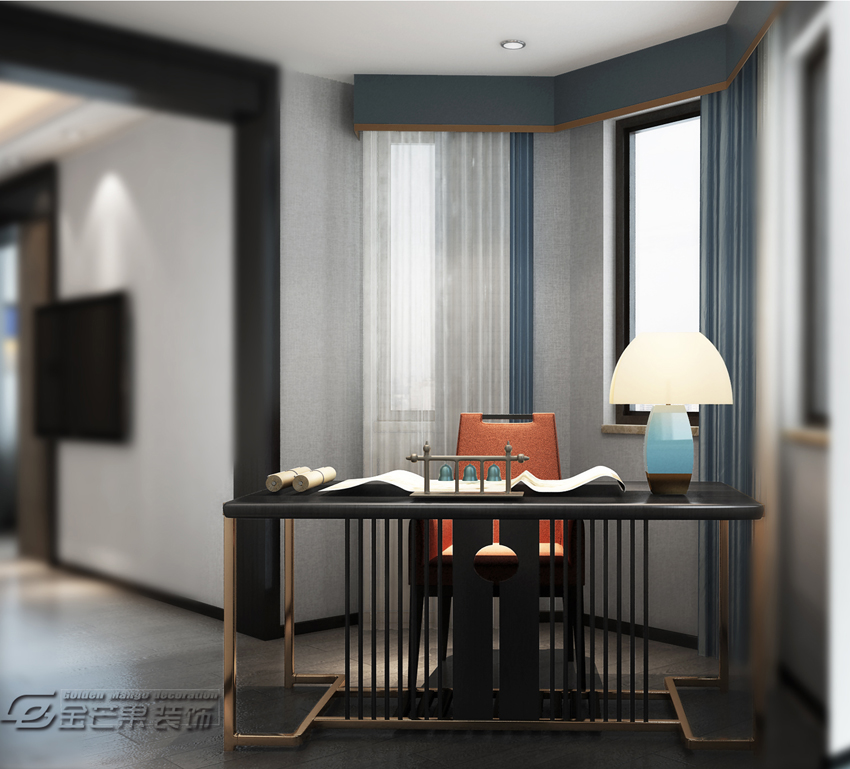 昆明湖瀾庭230㎡ 新中式風格 書房效果圖 金芒果裝飾設計師:李葉飛 出品