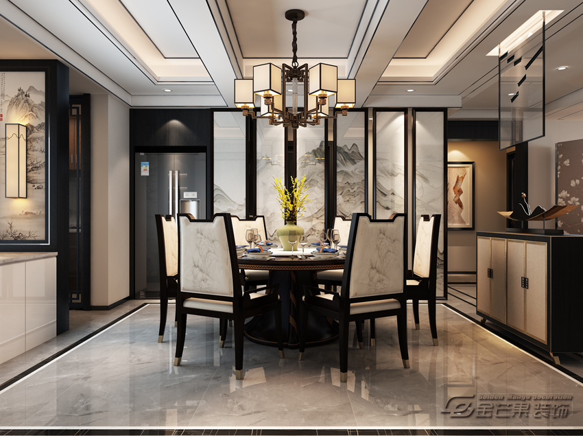 昆明湖瀾庭230㎡ 新中式風格 餐廳效果圖 金芒果裝飾設計師:李葉飛 出品