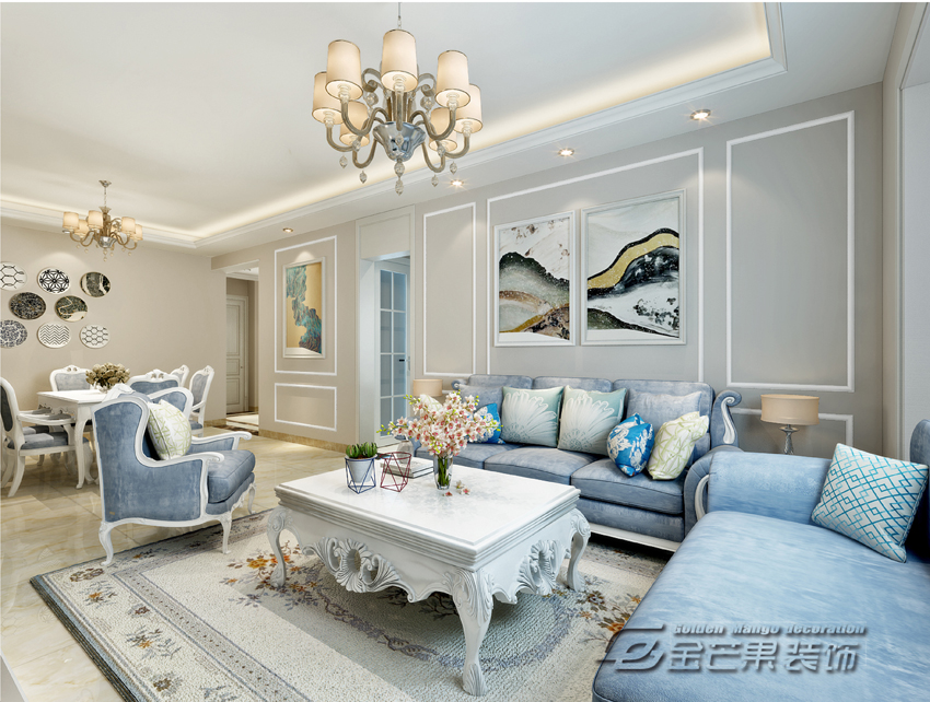 海倫國際123㎡ 簡歐風格 客廳效果圖 金芒果裝飾設計師:浦里哲 出品