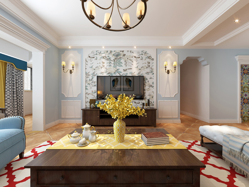 櫻花語140㎡ 美式風格 客廳效果圖 金芒果裝飾設計師:姜海濤 出品