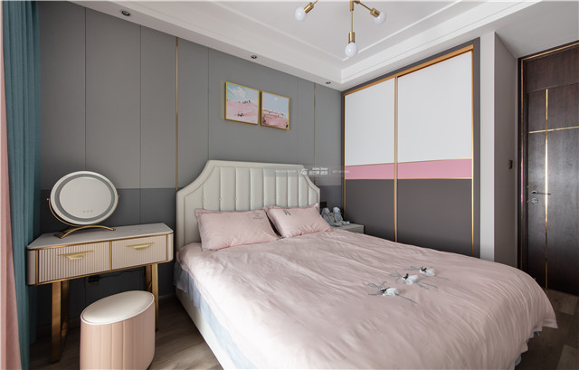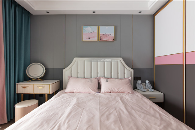 沉靜的灰色和粉色,搭配出溫馨、恬靜的空間氛圍,粉粉嫩嫩的顏色讓臥室變得精致且可愛。個性氣質(zhì)的空間格調(diào)。