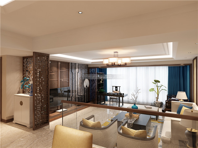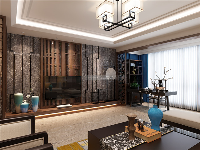 剛正的大理石搭配中式屏風裝飾和中式圖案線條,大理石的花紋和木材的雅致端厚結合在一起,營造既個性、又有格調的中式氣質雅韻。