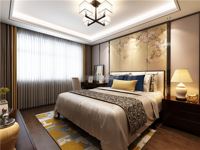 花鳥圖案床頭背景墻,渲染超棒的中式貴氣,雅逸的格調既有中式個性又有品質感。