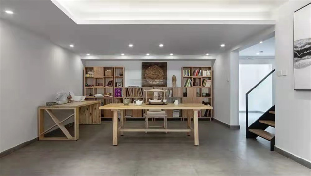 工作的時候進(jìn)入另一個書房,桌柜在合理的設(shè)計之下既實用又不沉悶,而連通的空間也讓工作與學(xué)習(xí)變得輕松了起來。