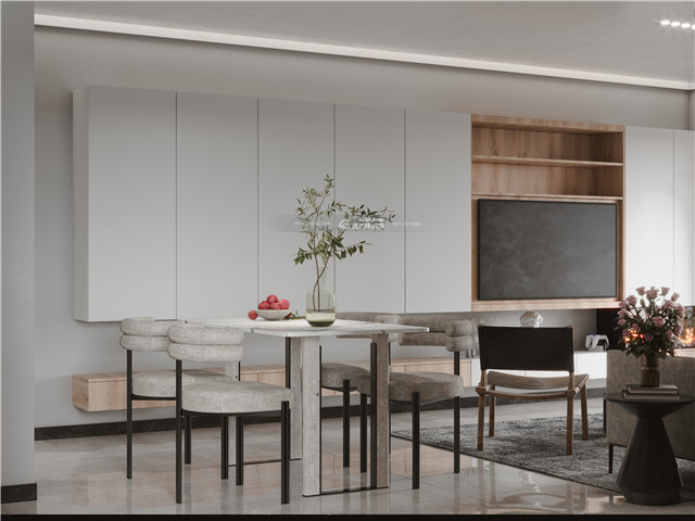 簡約的氣質放松而精美,大量柜體簡約卻又帶來大量收納空間,和原木搭配展現一種溫馨而又慵懶的溫度居家。