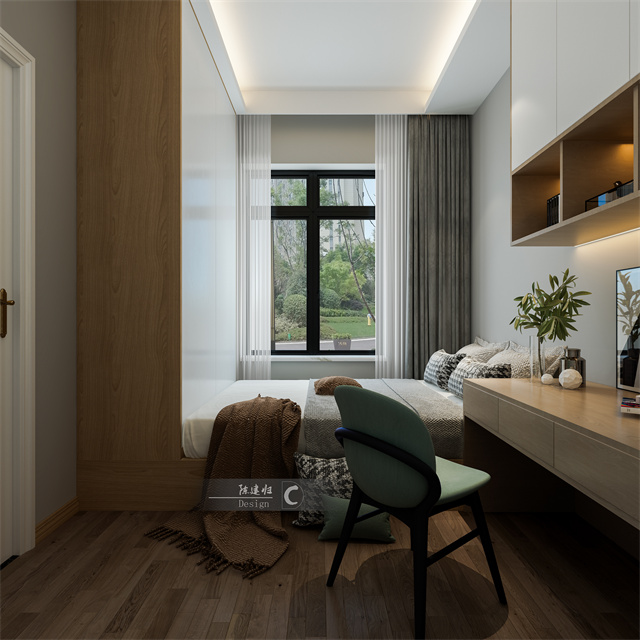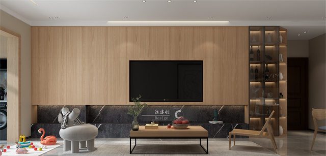 原木色電視背景墻,隱形的柜體一體式設(shè)計(jì),干凈利落,加之電視位置的視覺調(diào)節(jié)、可愛簡潔的家具、溫柔的配色,溫馨又舒適。