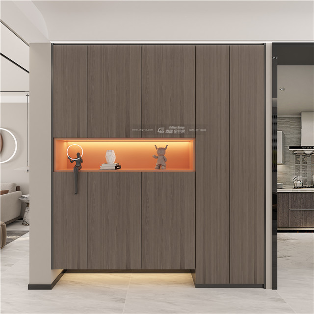 木飾面溫暖利落,暖黃的燈光照亮家的溫暖。