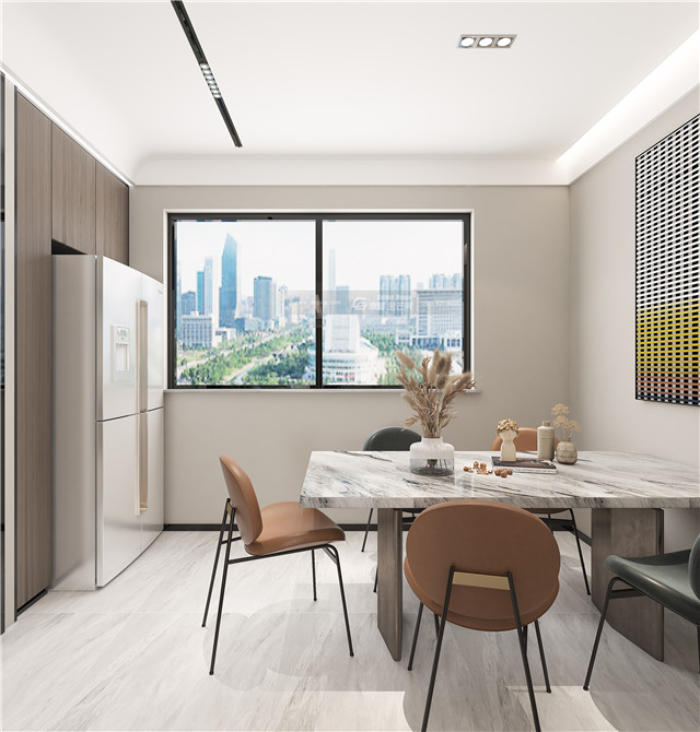 大理石臺面增加時尚精致感,木質餐邊柜讓用餐空間也變得溫馨而治愈。