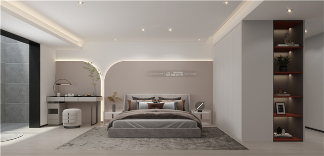 優雅的弧度,溫柔的配色,讓臥室展現不一樣的溫柔甜美感,讓臥室變得更加有居家的氛圍。粉粉嫩嫩的顏色,睡覺都是溫溫柔柔的。