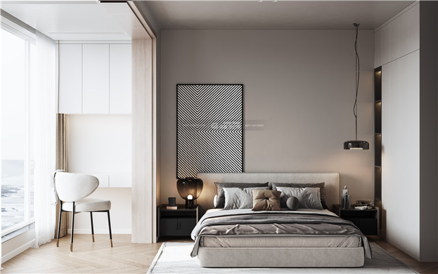 統一的淺色調不會過于雜亂,讓身心變得沉靜,隨之產生的是適合舒睡的親切感。木色帶來純粹的空間感受,展現返璞歸真的家居氣質。