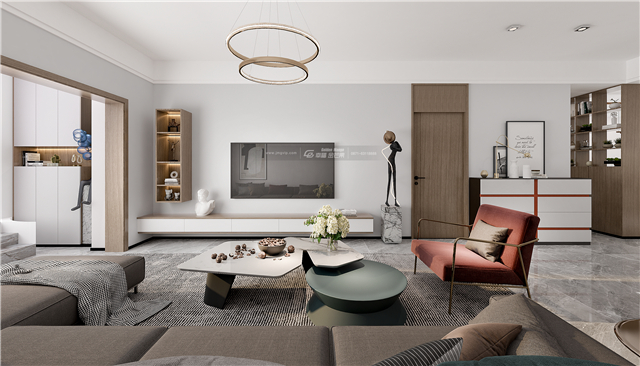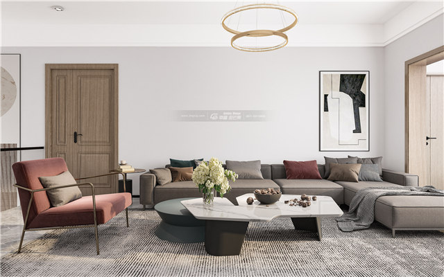 木材溫厚的觸感,讓家居變得更加有韻味,和時尚感沙發、單椅、小幾結合,讓空間格調變得更加多變。