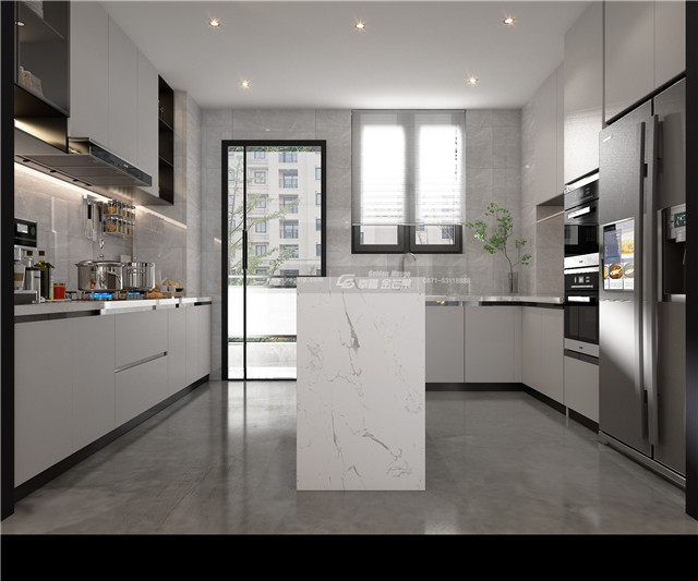 洗切炒動線流暢,中間設置島臺,同時滿足中西廚烹飪需求。在迎合整體空間簡約利落的基礎上,更有提升屋主生活品質的小心思,生活的品質感在方方面面都得到展現。