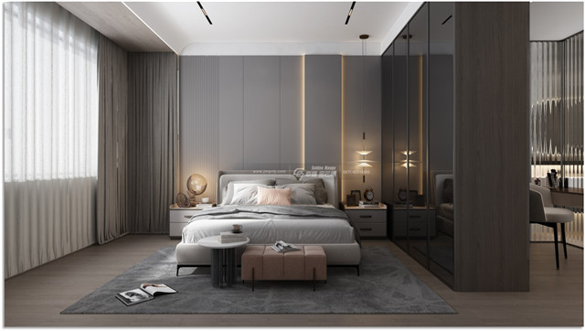 浪漫又理性,酷美又溫柔,灰色讓一切都仿佛慢了下來,又輕了下來,安逸氣質又格調感滿滿,家居品質驟然提升。一盞精美的燈飾,營造溫柔又浪漫的就寢空間。