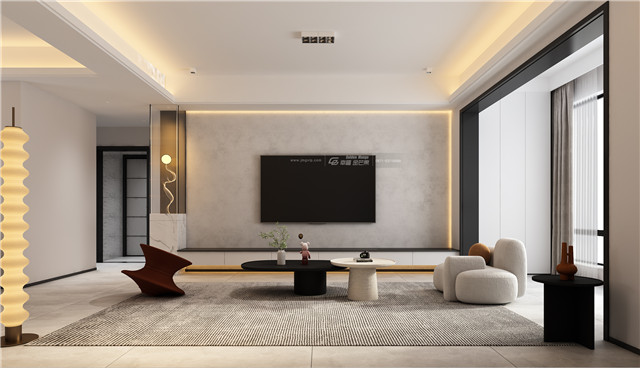 電視背景墻和沙發背景墻相呼應,選用盡量簡約的家具,把更多的空間留給釋放自由的靈魂。