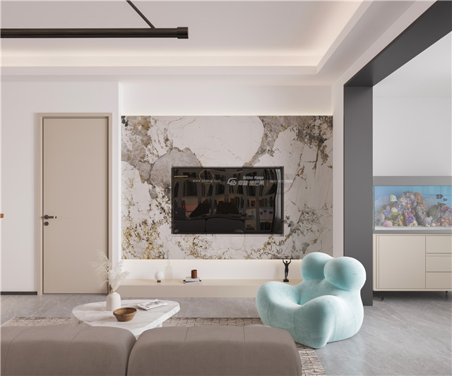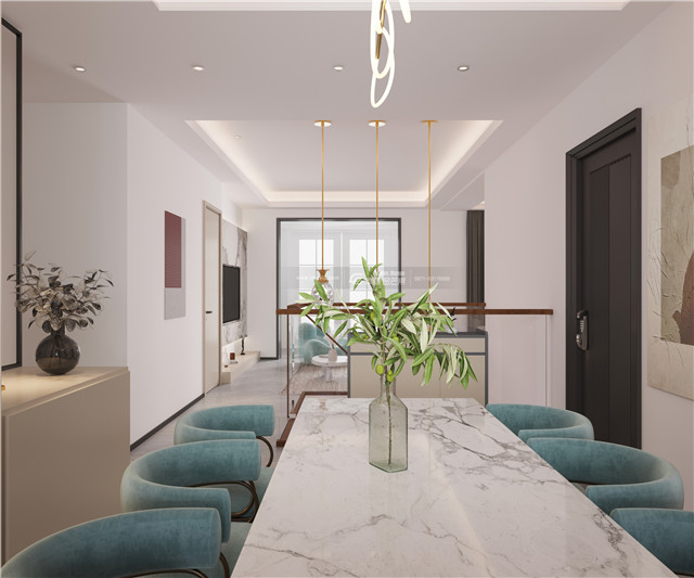 自在輕快的格調(diào),讓身心盡情的感受自由,展現(xiàn)別墅大宅里的簡約高級氣質(zhì)。大理石電視背景墻,讓空間變得豐富。融入淺綠色單椅,清新又活潑。
