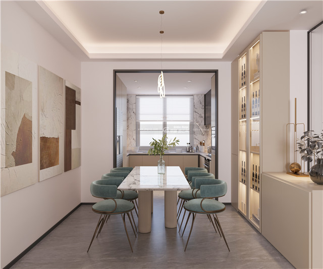 藍(lán)色餐椅讓空間更加清新,同時呼應(yīng)客廳藍(lán)色單椅,個性大方的氣質(zhì)讓餐廳展現(xiàn)出高級的格調(diào)。