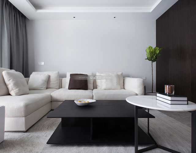 現代簡約風格的特點就是以黑白灰為主色調,家具配置采用白亮光系列家具,獨特的光澤使家具倍感時尚,具有舒適與美觀并存的享受, 在配飾上,延續了黑白灰的主色調,以簡潔的造型、營造出時尚前衛感。
