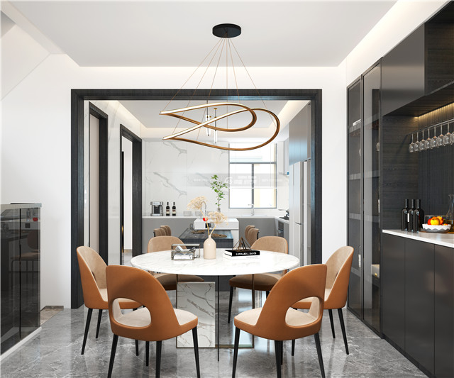 圓桌帶來滿滿的儀式感,精致的餐邊紅酒柜,為大宅生活增加了不少的情調。