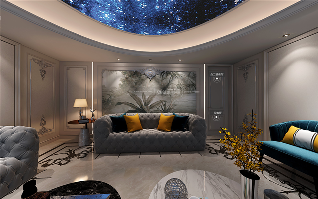 華麗的金色屏風更加顯現出宮殿般的恢弘氣勢,氣度非凡,高貴典雅,彰顯生活層次和不凡的身份地位。高貴的雕花吊頂搭配華麗的燈飾,搭配金色的金屬質感沙發、茶幾等家居,貴氣而不俗氣,氣度非凡,氣質感滿滿。