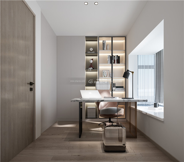 書房+飄窗的設計,清透的陽關撒入,萬卷古今消永日,一窗昏曉送流年。一桌一椅,清雅安靜,閑讀靜思,身后的書都是自己喜愛的,書海徜徉,人生也是另一種自在。