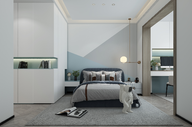 兒童臥室注重學(xué)習(xí)區(qū)域,一體式的書桌+書柜的設(shè)計(jì),能滿足孩子學(xué)習(xí)、書籍收納、玩具收納的需求,同時(shí)擁有獨(dú)立的個(gè)人空間,有助于培養(yǎng)良好的生活習(xí)慣。