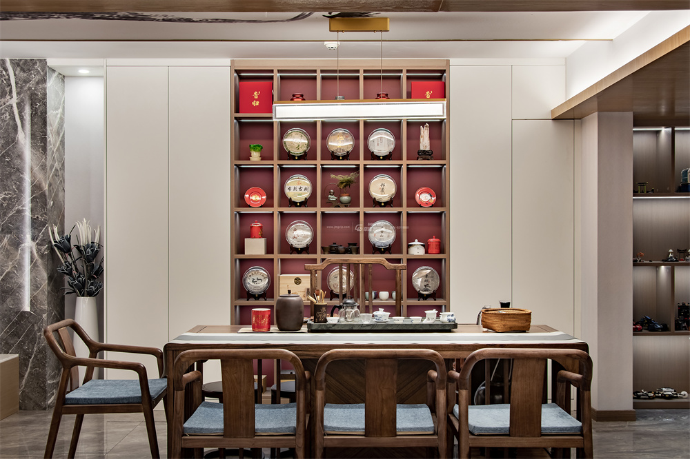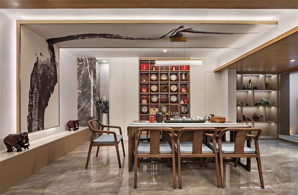 人生一愿,有間茶室,安頓身心,撫慰余生。古樸的茶桌椅、博古架,串聯(lián)起貫通古今的時代的印記。一幅山水畫,寄托屋主瀟灑逸然的閑思。偶寄閑情,暫忘喧囂,邀二三知交,煮茶、解語。