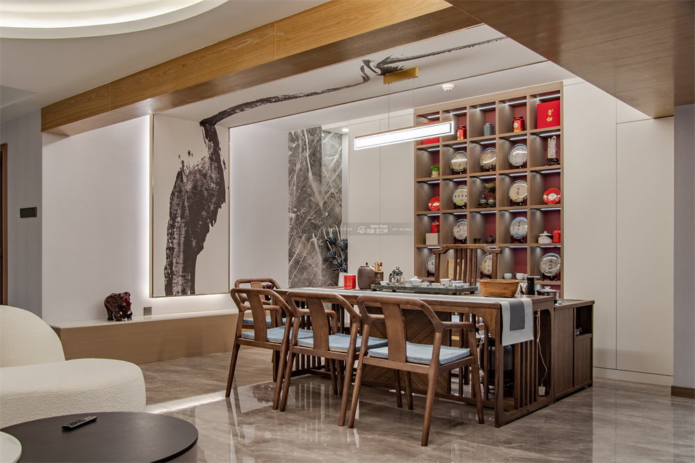 心隨禪境,靜心養(yǎng)神。無事啜茗,可對四季風景。當古木遇上朱紅,蔓延出婉約又貴氣的品質(zhì)感,其中不乏穿越時代般的現(xiàn)代時尚與高級。展露一個完整的家居內(nèi)涵里蘊含的精神人文主義。