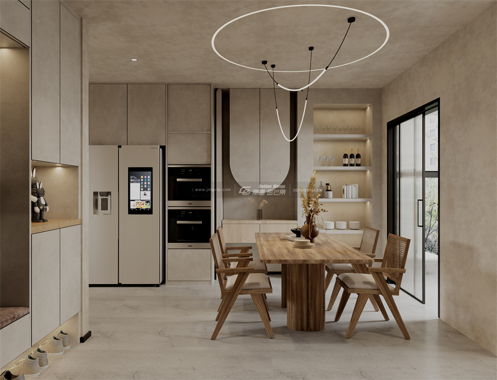 2、餐廚一體化設(shè)計(jì),提高空間利用率,縮短餐廳與廚房的動(dòng)線距離,帶來更佳的下廚體驗(yàn)