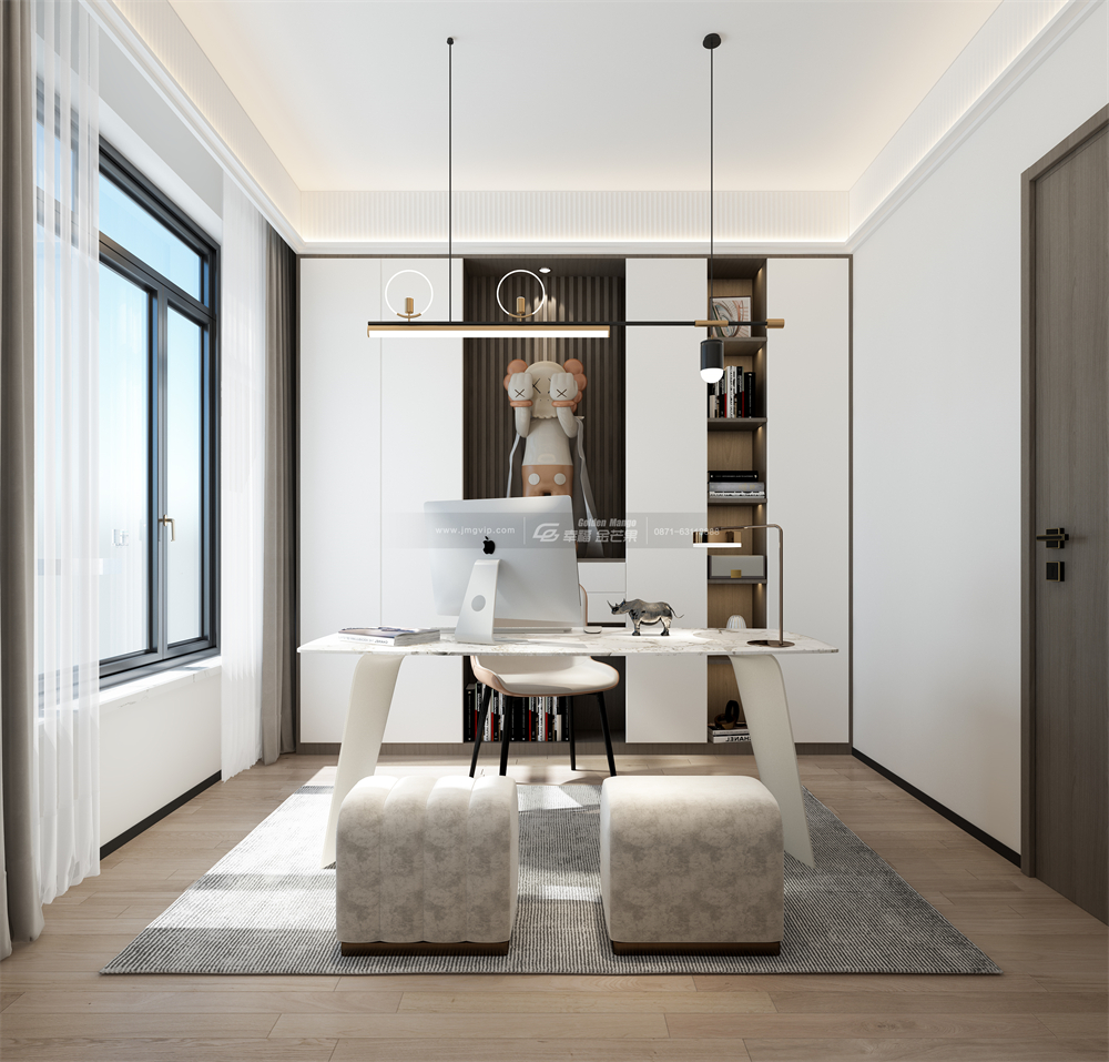 書房采光良好,是學習與閱讀的最佳空間。同時選用柔和的色彩進行搭配,更利于主人靜下心來閱讀或是專注辦公,提高工作效率。
