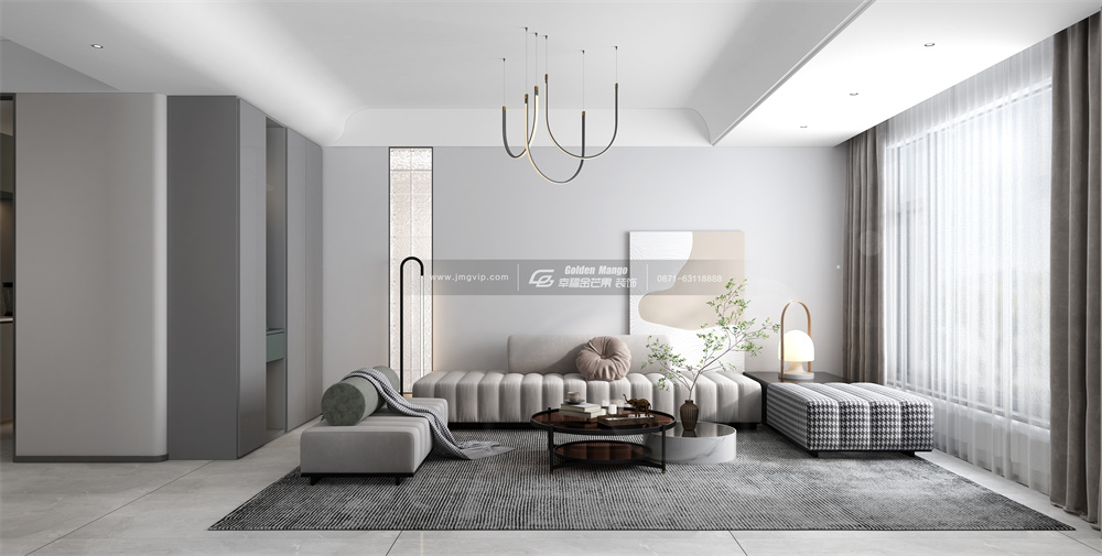霧欲淡,水如空,一葉飄然煙雨中。低飽和的高級灰色調(diào),自然清新與精致相結(jié)合,給人帶來一種煙雨朦朧的感覺。幸福金芒果裝飾在昆明西南海小區(qū)的設(shè)計就體現(xiàn)出這種感覺,整體空間采用低飽和色調(diào),搭配上現(xiàn)代簡約的風(fēng)格,自帶濾鏡高級感!