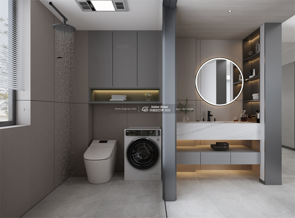 衛(wèi)生間沿用客廳色調(diào),整體布局美觀大方;且分隔空間后兩個區(qū)域互不干擾,提高了衛(wèi)生間的使用效率,使用起來也更方便舒心。