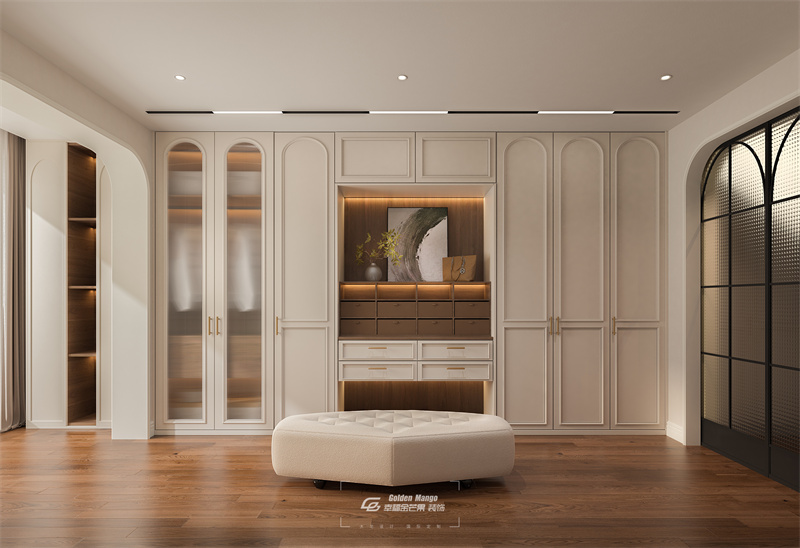 把裂痕裱進相框,回憶織成經網,復古的氛圍更顯溫馨。低飽和度的顏色,營造放松的氛圍,更有利于擁有良好的睡眠。法式的貴氣展露著低調的奢華,浪漫優雅的感覺彌漫在空間每一個角落。