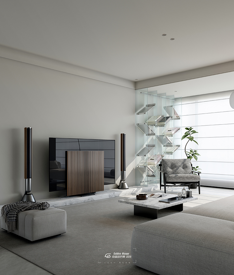 沙發(fā)是簡約的白色,搭配灰色地毯,看著就軟乎乎的,忍不住想上去打個滾兒。大理石茶幾往中間一架,瞬間提升了整個客廳的格調(diào),隨便放本書、擺個香薰,就是電影里的場景。靠窗還擺了個單椅,配上弧形落地?zé)簦C在那里,喝喝茶、看看書,愜意得不行。
