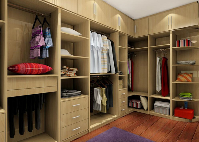 如果住宅內(nèi)沒(méi)有這些邊邊角角可以利用,但又非常需要衣帽間解快衣物存放的煩惱,可以試著設(shè)置一個(gè)開(kāi)放式的衣帽間,即是把一面墻給封閉起來(lái),設(shè)置衣柜存放衣物,而不與其臥室隔斷。這樣的衣帽間方便、簡(jiǎn)單、寬敞、通風(fēng),就是防塵差點(diǎn),如果家在風(fēng)塵比較大的北方,可采用防塵罩懸掛衣服,用盒子來(lái)疊放衣物,若多設(shè)一些抽屜、小柜,則更為實(shí)用。