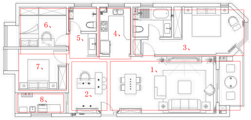 整個(gè)空間采用大量的灰色系元素,極簡(jiǎn)的樣式與深沉凝練的紋理,大氣而干練讓空間充滿著高度成熟而內(nèi)蘊(yùn)的意趣。設(shè)計(jì)師考慮到客餐廳比較寬闊,在原餐廳處增設(shè)輕食吧臺(tái),為餐廳空間營(yíng)造了不同的生活情趣。