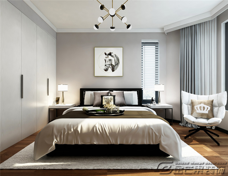 3、主臥:主臥常規(guī)布置,主人希望臥室是放松休息的地方,所以沒有設(shè)計(jì)擺放電視區(qū)域。