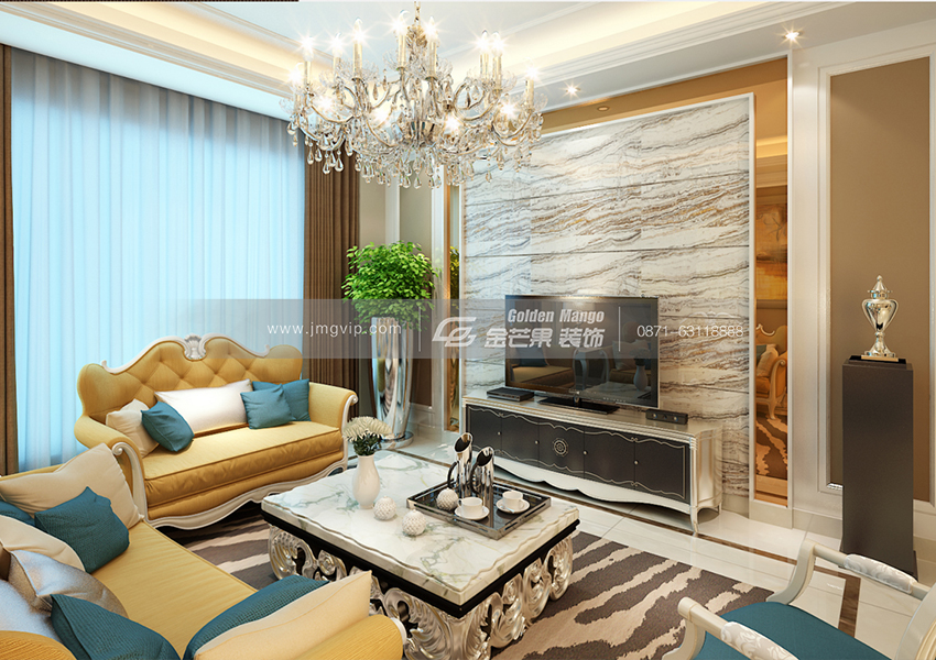 精美的水晶燈,電視背景墻豐富的紋理,沙發(fā)的搭配更顯歐式特色,茶幾、飾品、則是巴洛克風(fēng)格的體現(xiàn)??蛷d在水晶燈的映襯下顯得優(yōu)美十足,咖啡色的窗簾顯得韻味十足,透露著地中海風(fēng)格的沙發(fā),田園風(fēng)情和柔和的色調(diào)惹人喜愛。油畫文藝范十足。