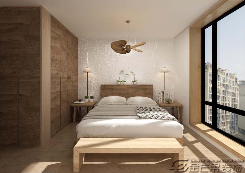 雙人床的布局,實(shí)用性更強(qiáng)。在親朋好友來(lái)訪時(shí)發(fā)揮著重要作用,以白色和梨木色相搭配,燈光柔和,有很好的休息體驗(yàn),實(shí)木的使用還原了自然風(fēng)的元素。