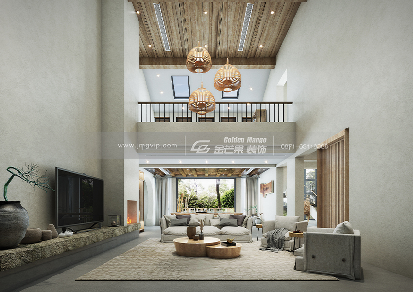 簡(jiǎn)單的配色搭配原木的吊頂和家具,整個(gè)空間營(yíng)造一種純粹、大氣、古樸的感覺(jué)。慵懶的沙發(fā)既舒適又時(shí)尚,簡(jiǎn)單的茶幾回歸自然,吊燈既充滿設(shè)計(jì)感又為空間增添了溫馨、精致的感覺(jué)。客廳整體空間營(yíng)造一種空靈、通透的感覺(jué),讓身心得以釋放,有讓人置身叢林之感。