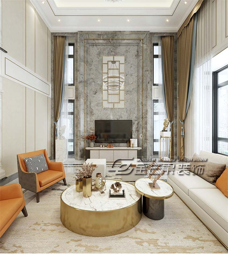 挑高的客廳設計,入眼即是貴氣典雅的感覺,營造宮廷皇室般的尊貴感。