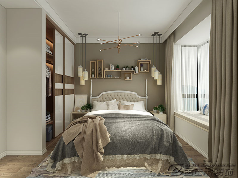主臥室以灰白為主,整體簡約溫馨。大衣柜和床頭柜很好地解決了收納問題,是整個(gè)空間整齊有致。背景墻裝飾品和小吊燈設(shè)計(jì)感十足,讓房間多了幾分趣味。大大的飄窗讓人忍不住想呆上一整天,曬曬太陽逗逗貓,愜意自在樂逍遙。