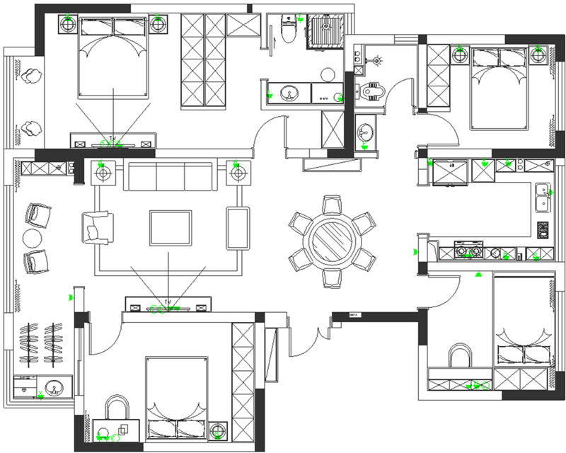 優(yōu)點(diǎn):戶型結(jié)構(gòu)方正,四室兩廳兩衛(wèi),帶有兩個陽臺,每個空間的采光及通風(fēng)都很不錯。
