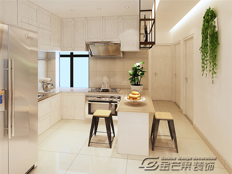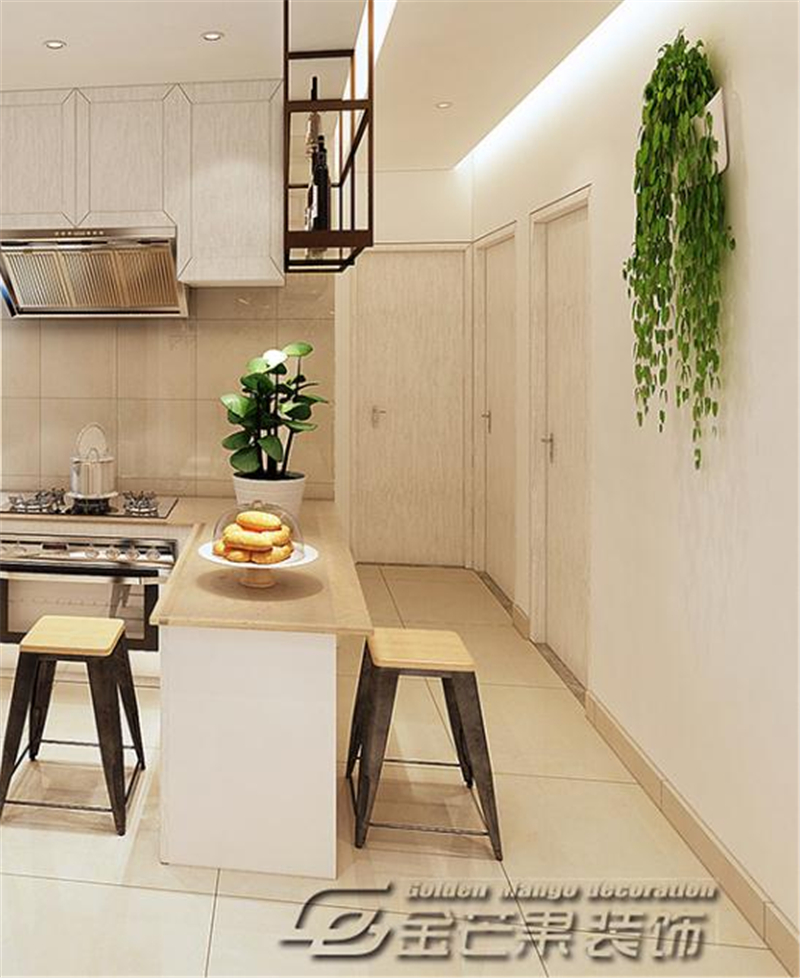 干凈、簡潔的白色居家,整潔、明亮出廚房空間,搭配綠植,讓做飯也可以成為一件有條不紊、精致、有品位的事情。