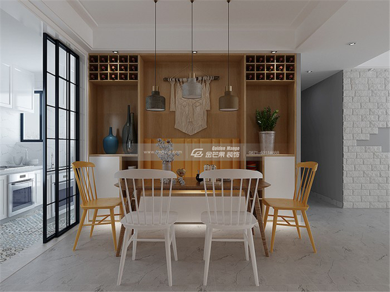 原木的餐邊柜搭配黑色的移門,自然氣息兼具現代時尚感。餐邊柜可以做酒架,又可以做展架,實用性和功能性兼具。