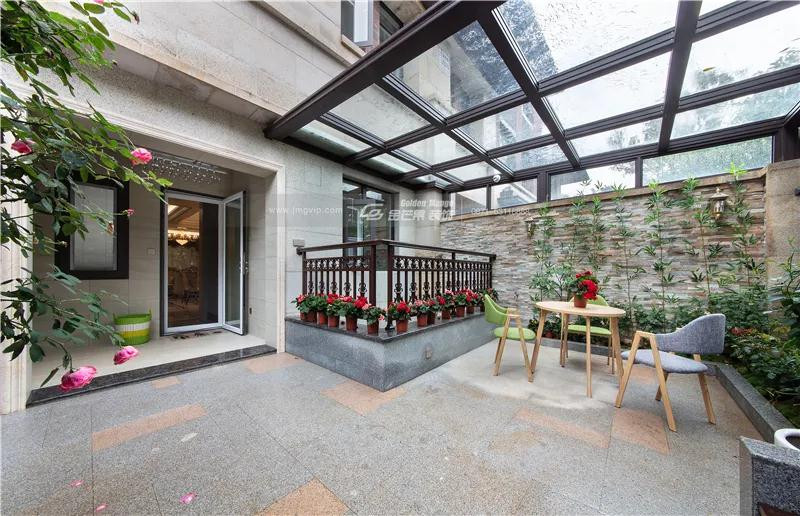 與入戶庭院相對的室外庭院,剛下過雨的地面邂逅一地被雨水打落的花瓣,清香仿佛還留在枝頭。聽雨落有聲,看云卷云舒,在寸土寸金的都市獨享一方安逸,實在是一件美事。