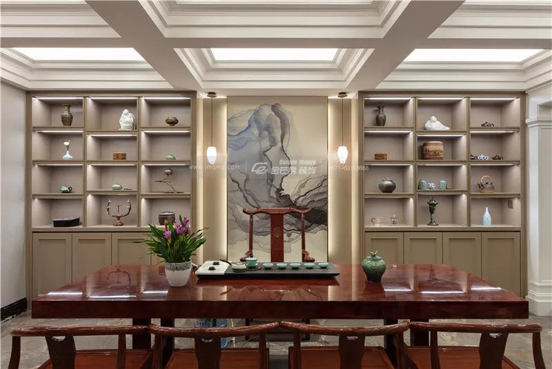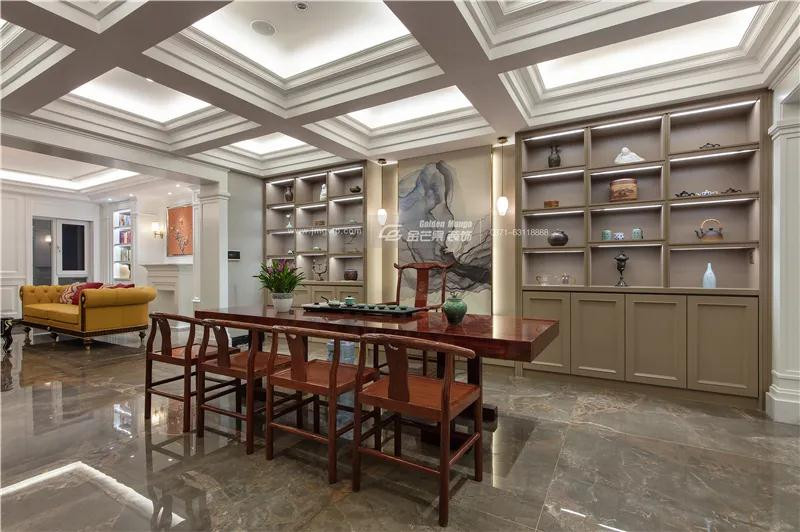負一樓主要是休閑茶室和休閑客廳區域。借用西方的飽滿熱烈與東方的細致精巧,游走于建筑美學藝術之間。