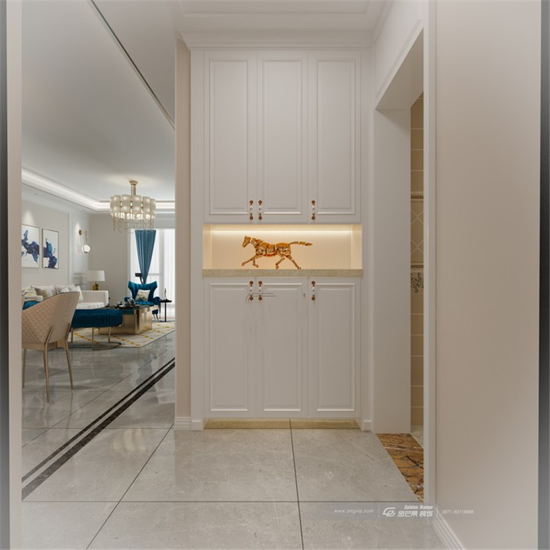整體格調是簡約大氣的白,高貴典雅,不落俗套,輕松打造高級感。點綴藍色家具,優雅而充滿魅力。當純貴的白遇上神秘的藍色,氣質而又高貴。