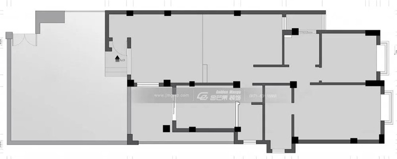 在原始戶型中廚房很小,且廚房與餐廳位置太近,動線緊張;很多柱子,增加空間設計難度。